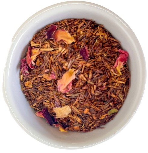 Infusão deliciosa de Rooibos com framboesa, pétalas de rosa e baunilha.